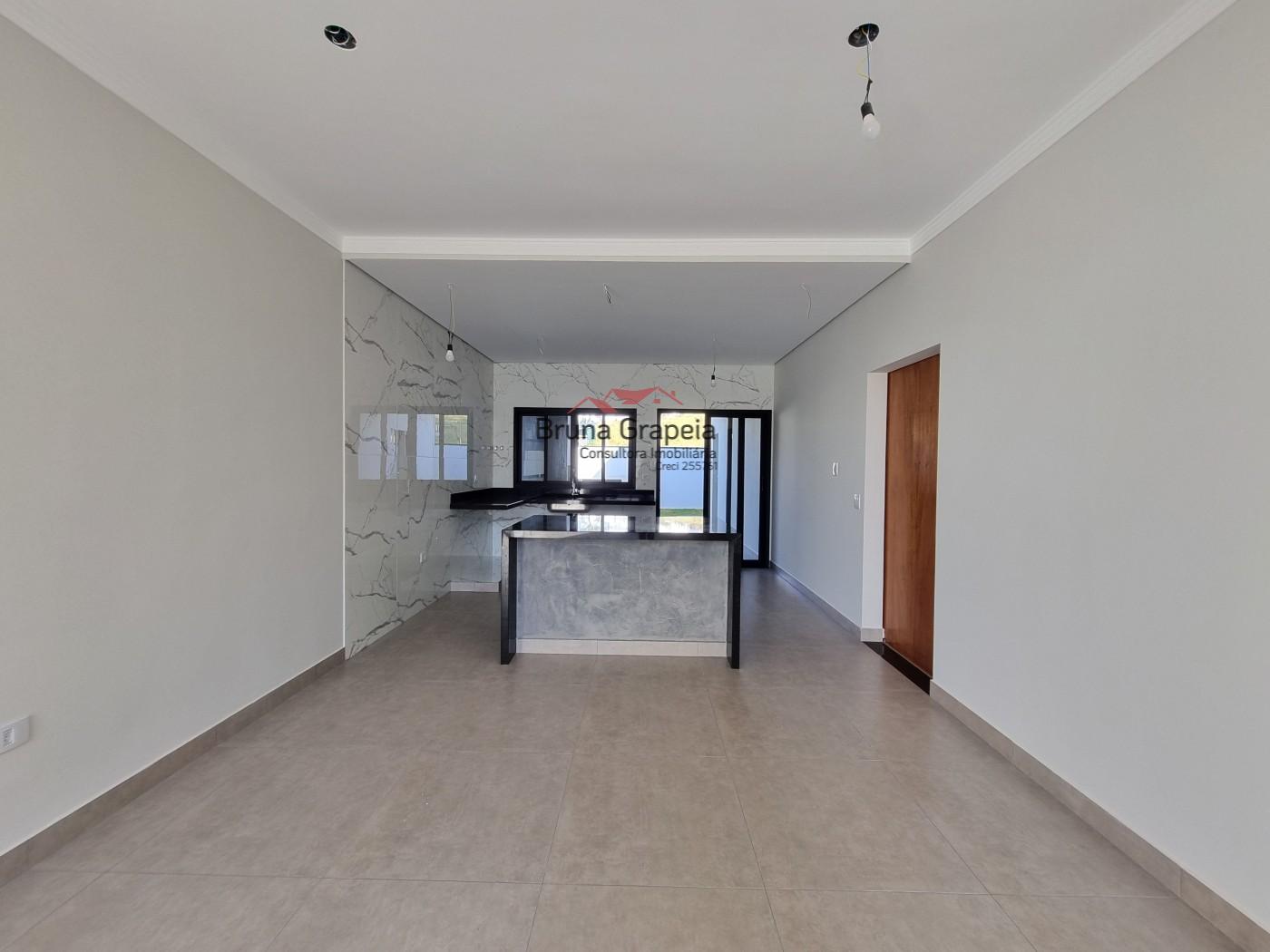 Com 3 dormitórios sendo 1 suíte, sala de estar com pé direito alto, sala de jantar integrada com a cozinha, banheiro social, área de serviço, área gourmet com churrasqueira, quintal gramado, banheiro externo e 2 vagas de garagem cobertas.