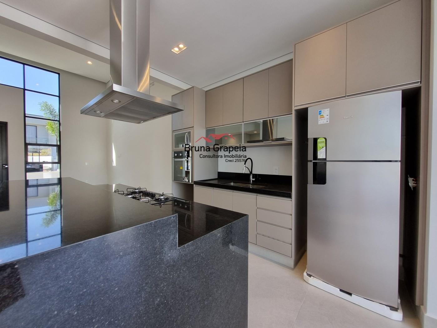 Com 3 suítes, sala de estar com pé direito alto garantindo maior conforto. Escritório, sala de jantar, cozinha repleta de armários e já equipada com geladeira, micro-ondas, forno, cooktop e coifa, despensa, área de serviço, banheiro social e área gourmet com churrasqueira, piscina e jardim.