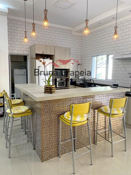 Casa com 3 dormitórios, sendo 1 suíte master com closet, sala de estar, sala de TV, e sala de jantar integrada à cozinha, além de área de serviço e banheiro social.